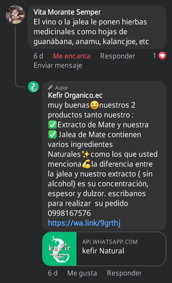 ¡Bienvenidos! Somos un emprendimiento ecuatoriano, dedicado a elaborar bebidas y alimentos 100%🌿naturales y sin químicos, como: el Kéfir de leche🥛, la Jalea de Mate🍈